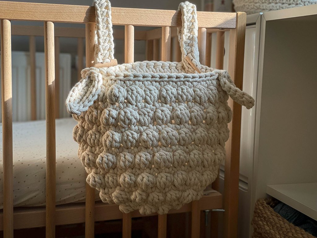 - Praktické zavěšení – Díky pevným poutkům ho snadno připevníte na postýlku, přebalovací pult nebo věšák.