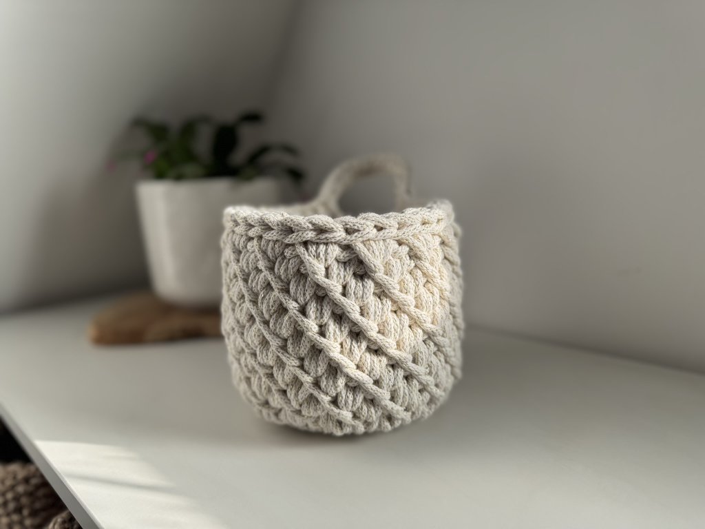 Košík s jedním ouškem, krémový se zlatou niťkou